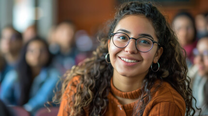 Happy bright positive enthusiastic business person female smiling confidence and successful personality