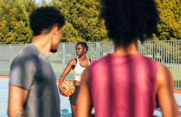 Smiling hispanic woman with hoop earrings engaging in conversation