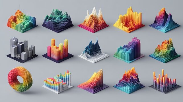 Multilayered data dashboard displaying futuristic neon analytics, stacked bars and histograms