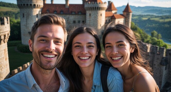 Medieval stone bridge leading into a small village with cobbled streets and historic houses.
