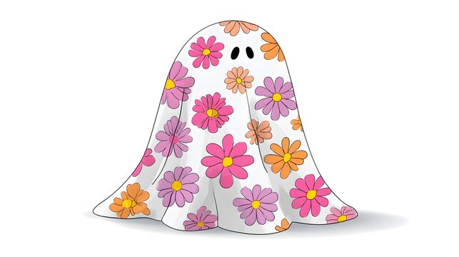 Cute ghost with a flower pattern textile on wa hite background