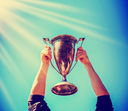 Three small figurines, two red and one blue, collaborate to hold up a large, golden star against a blurred background