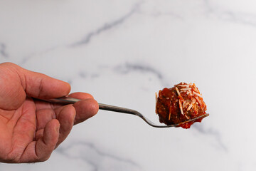 Man holding disposable wooden fork and knife, isolated on white or transparent background