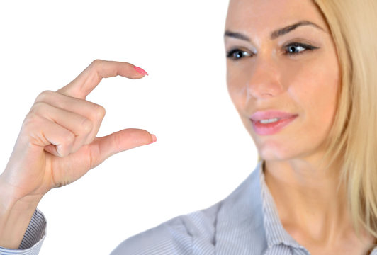 Woman using hand gesture on virtual screen technology