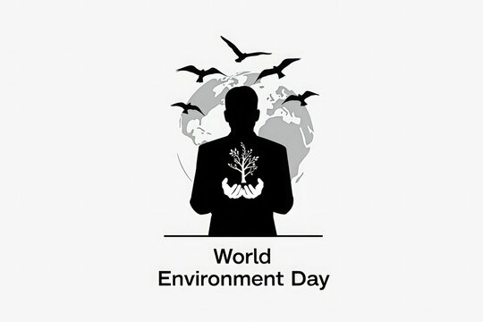 The palms carefully hold a small green tree, above which is depicted a cloud with the inscription "CO2". A banner with space for the text.