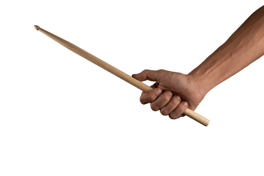 Hand holding a wooden stick from a protest on blank backgroundsign
