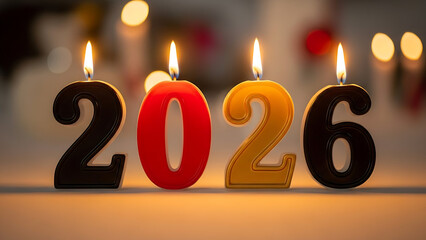 Elegant golden celebration graphic announcing the arrival of the new year 2026 with sparkles
