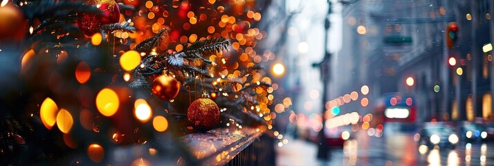 occasion brightening and beautification concept christmas wreath bokeh lights over hopeless blue foundation. AI Generated