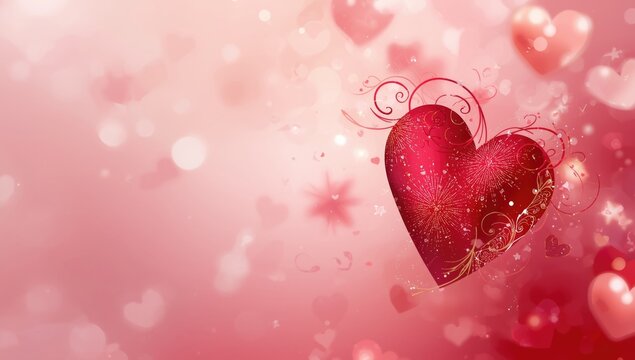Valentines day card banner featuring delicate heart motifs in gold and red, Valentine background with hearts
