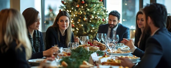 Festive Christmas Lunch Among Coworkers Enjoying Holiday Treats and Corporate Bonding