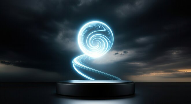 3D hologram projection of a product for demonstration, innovative advertising, future technology, stock illustration