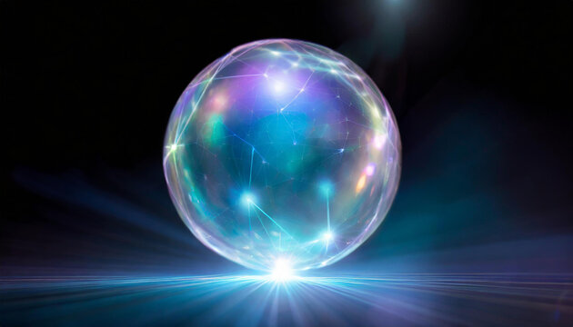 Futuristic abstract sphere with neon tendrils in cosmic network space