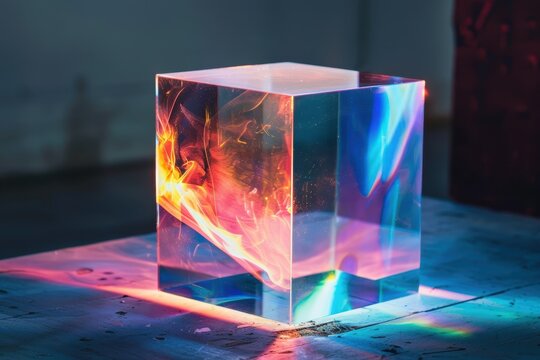 Glowing transparent cube with colored reflections
