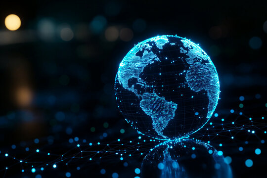 Futuristic holographic globe illustrating digital data network