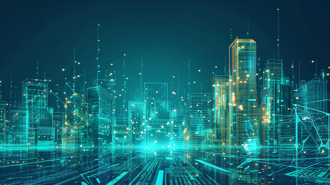 An AI art generator creates a visually stunning illustration of a futuristic cityscape with advanced holographic technology integrated into each building Explore the potential of technology