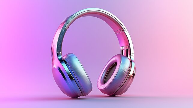 3D glossy headphones with a smooth and reflective surface, on pastel solid background. 11