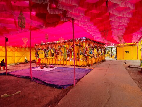 Havan kund puja near Hindu Temple. Square shaped Yajna Kunda ( Homa Kundm(sanskrit) or Agni Kundam).A yajna kunda or ritual pit for offerings to the sacred fire at a Hindu temple in Odisha,India