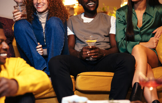 Group of friends socializing at home gathering