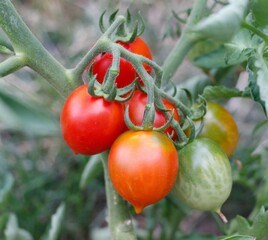 Fresh cherry tomatoes on the vine ready for harvest