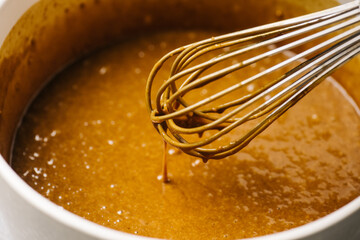 Golden-brown raspberry batter in a baking dish, ready for the oven,  sweet,  ready