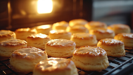 Plate of fluffy buttermilk biscuits with butter and honey drizzle, fluffy, buttermilk, biscuits, plate, butter, honey