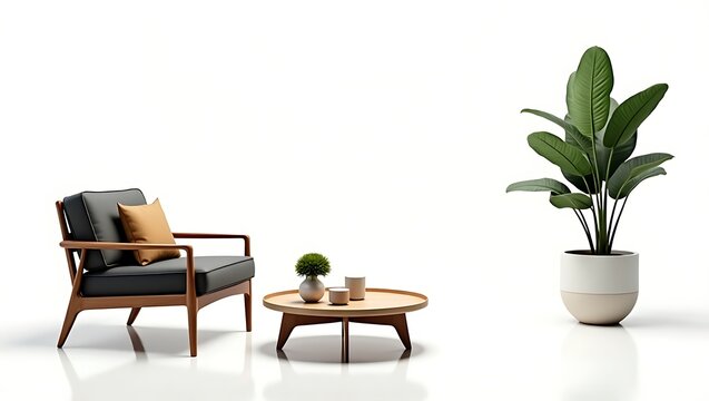 Modern Living Room Furniture Set with Armchair Coffee Table and Plant