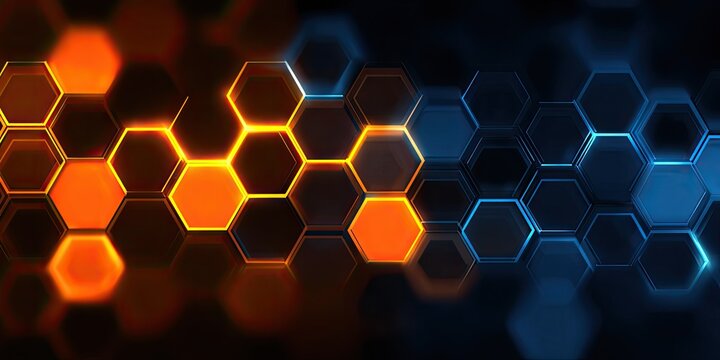 Sleek modern honeycomb pattern with glowing blue neon lines on dark background, symbolizing technology and connectivity