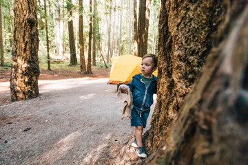 Magical cottontail rabbit in forest clearing with dappled sunlight