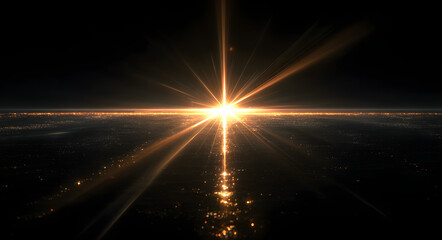 Midnight blue particle stream with glittering bokeh and horizontal glow