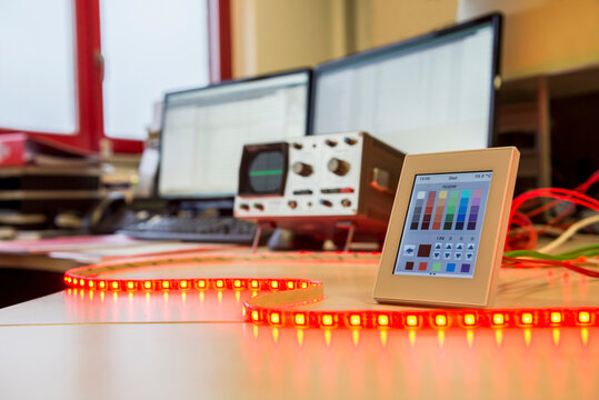 Installed and programmed led lights illuminating on table, Munich, Bavaria, Germany