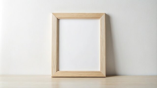 Mockup of a medium shot frame on a light wood surface against a white background in a horizontal orientation