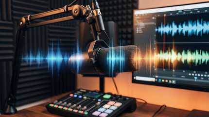 Sound wave visualization; abstract audio frequency design elements,  circular and horizontal formats.