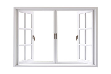 Wide open window with amazing countryside view on foggy day. Stay home concept. Scenery view from the house. Travel to Spain and holidays concept. Open a window to air the room. Ventilate your house.