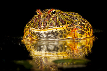 Fantasy concept. Makeup of mystical creature with patterns and horns