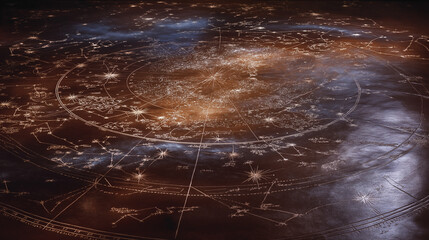 Firelight Flickering Over Astrological Map on Stretched Leather