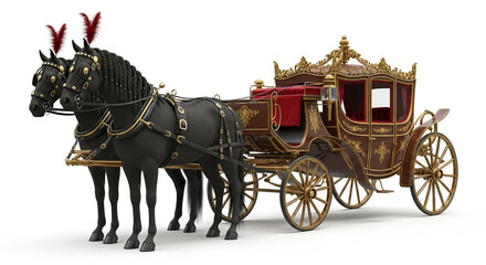 Elegant gold and maroon horse drawn carriage isolated on transparent background