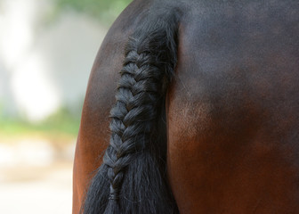 Beautiful braid on a tail at a horse.