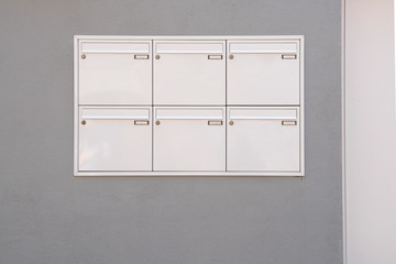 A sleek mailbox stands alongside a pristine walkway, highlighting a chic home entrance with a prominent house number.