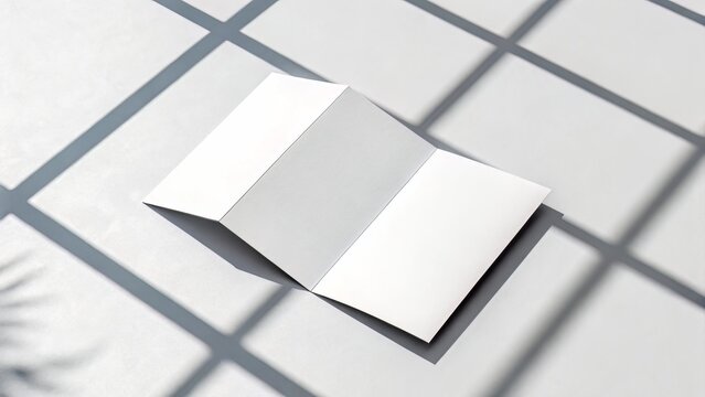 A folded white leaflet mockup hovering over a clear surface with crisp shadows?great for tri-fold or zine formats.