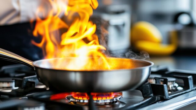 Kitchen Fire, Cooking, Flames, Pan