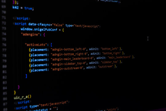 Close-up of colorful computer code on a screen, digital, against a dark background, concept of programming. Generative AI