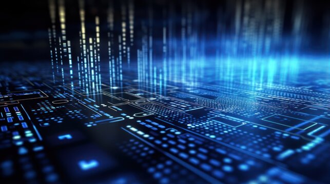 IT technology background with cascading lines of code and algorithms, showcasing the core of digital infrastructure