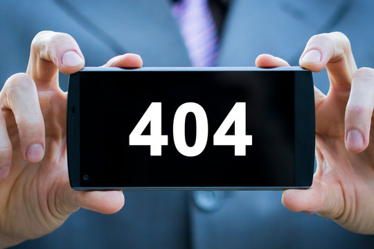 Businessman presses button http 404 error web on phone virtual electronic user interface