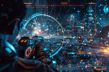 Futuristic Soldier with Digital HUD