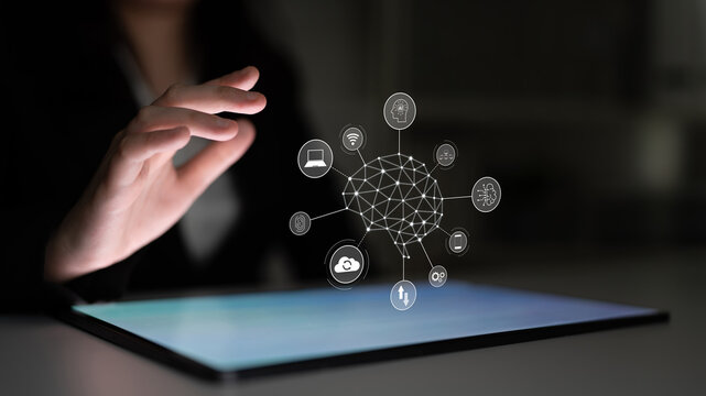 Futuristic ai concept with digital brain and data elements
