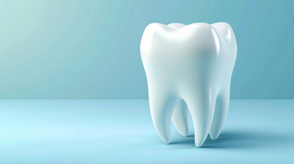 A white tooth is shown on a blue background. The tooth is the main focus of the image, and it is a close-up shot. The blue background gives the image a calm and serene mood