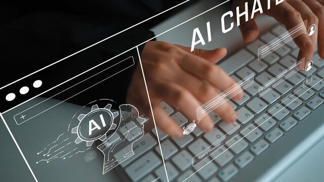 Human Interaction With Ai Chatbot On Digital Interface Images