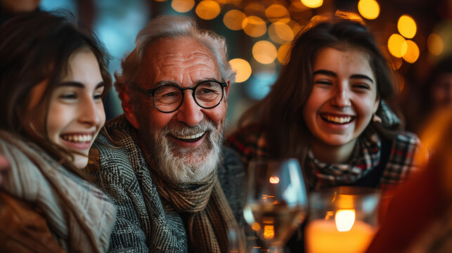 Friends and family laughing and embracing each other during a festive gathering, capturing the warmth and happiness of human connection as loved ones share moments of joy and togetherness.