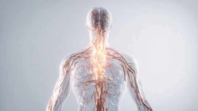Human Nervous System Highlighted with Vibrant Neural Pathways