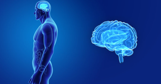 Brain zoom with organs lateral view